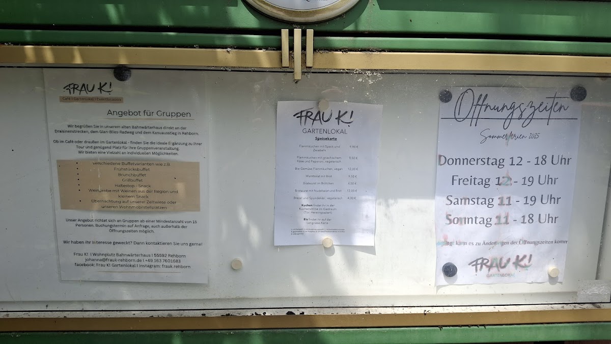 Whether you’re stopping by after a scenic hike, a bike ride, or a kayaking trip on the Glan, FRAU K! is the perfect pit stop. You can enjoy a refreshing drink, hearty meal, or simply relax with ice cream, surrounded by the natural beauty that welcomes adventurers. Rainer Rick noted that this cafe was their first stop on a Draisine tour and assured others that they would be back on the return trip for the unparalleled experience.